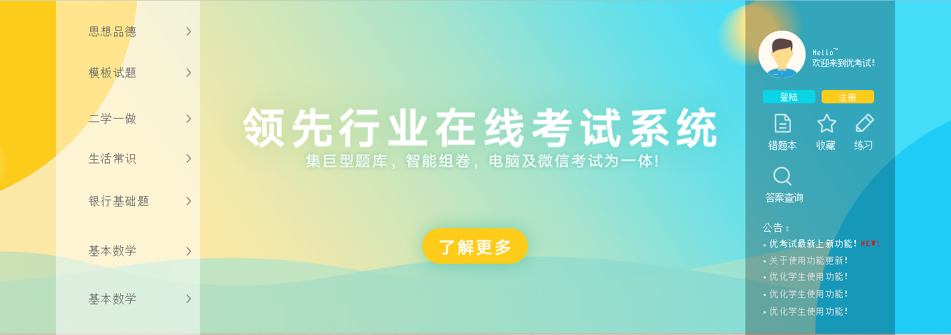 优考试是一款免费、高效的用于互联网和局域网的考试系统,操作简单,系统稳定